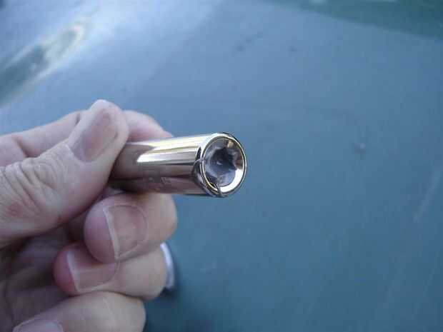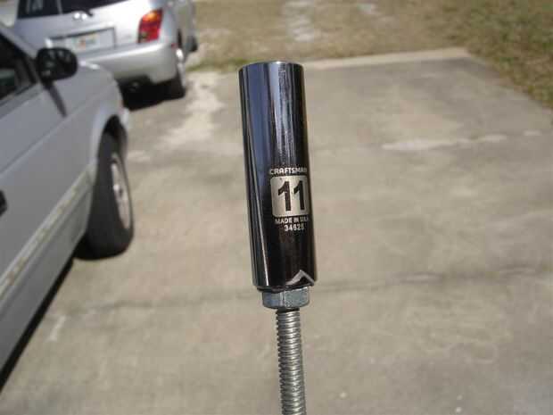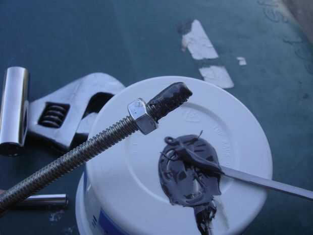 Carga hasta la rosca y con JB Weld, insertar la varilla roscada en la unidad de apertura, resultados en un pegote de JB Weld empujada en el cuerpo de toma de corriente. Usando un palo de empujar chatarra, aplane el exceso hacia abajo en la parte inferior de la toma y dejar curar durante la noche.