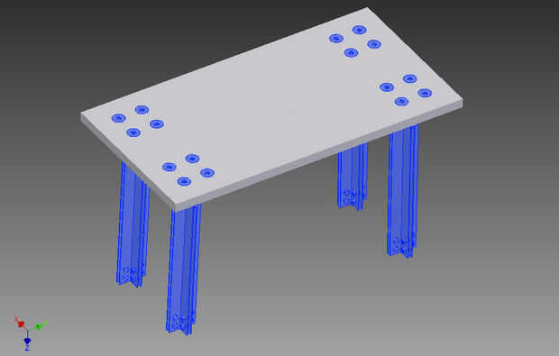He incluido los dibujos 2d (generadas sobre todo automáticamente de los diseños de Autodesk), así como un ejemplo de cómo increíble Inventor es. Utilicé los dibujos en la tienda de metal para hacer las piezas. Las ranuras son de 1/4 de pulgada en el dibujo, porque calculé mal la anchura de las patas, por lo que se va modelando un poco más en el futuro para asegurarse de que obtener todo alineado.
