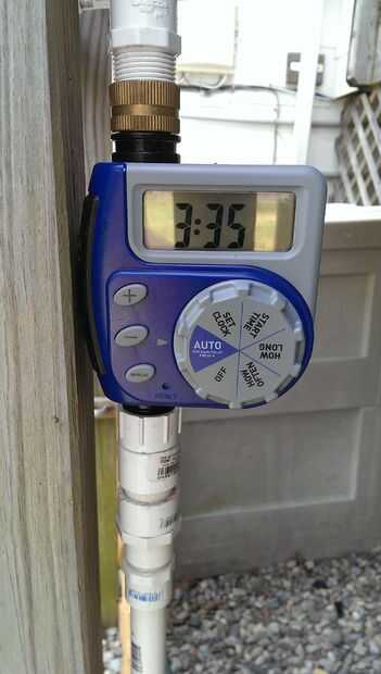 hice una planta automática de riego mediante una bomba de acuario y el contador de tiempo eléctrico.Los materiales me costo unos $60 que creo que es un poco empinado. Probablemente podría hacer esto por unos 40 $, usando una bomba de aire en lugar de