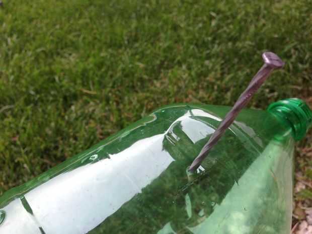 Paso 2: Iniciar presionando la uña dentro de la botella para hacer agujeros.