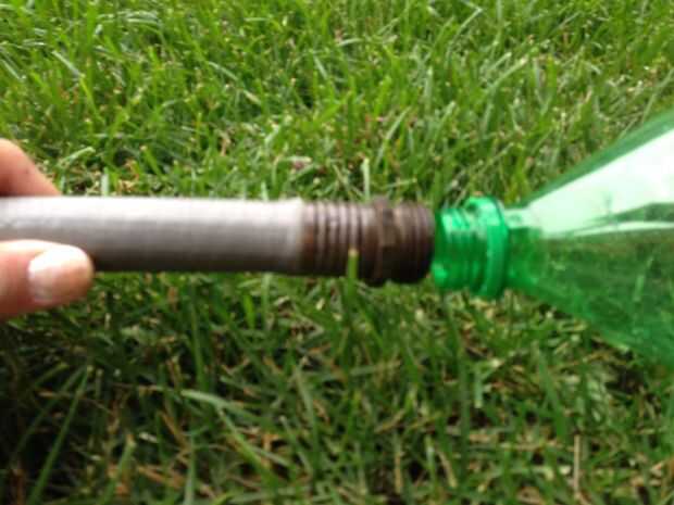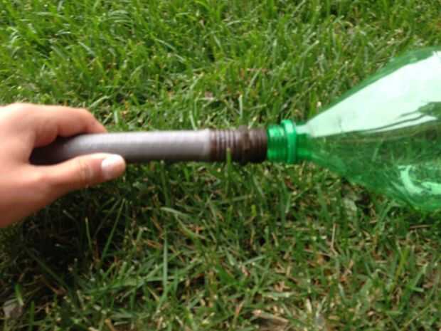 Paso 3: Alinear la manguera y la botella y utilizar su cinta para asegurarlo en su lugar.