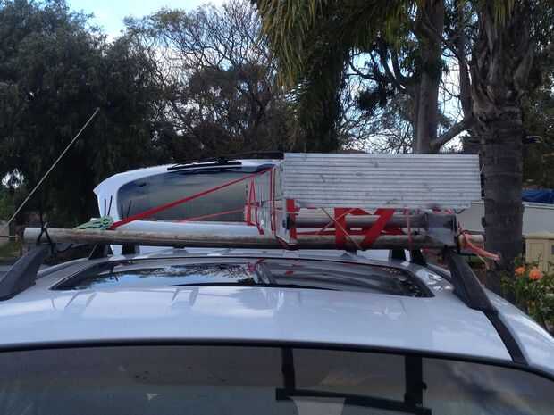 Necesitaba llevar una escalera larga fuera del coche, pero no tengo ningún rieles transversales para mi coche fija había montado en racks de techo.