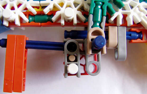 Conecte la unidad construida en el paso 9 al espacio en la barra azul en el paso 8.