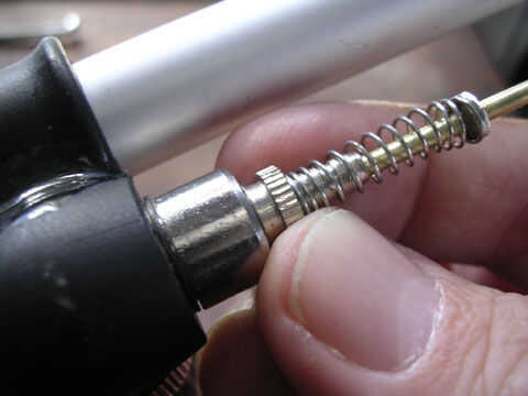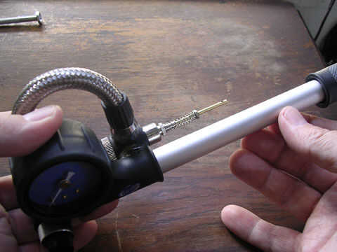 Muchas bombas (bombas de bicicleta, deportes bola bombas) vienen equipadas con una válvula unidireccional, pero la bomba 'BBB Airshock' que utilizo tiene un solo sentido válvula más una manguera reforzada. Cuando el extremo de este tubo se bloquea (con mi XRV), actúa como un tanque de aire pequeño. El aire se comprimirá en ese pequeño espacio y sólo se liberará cuando abro el XRV.