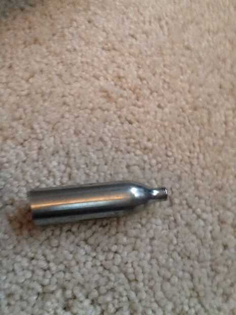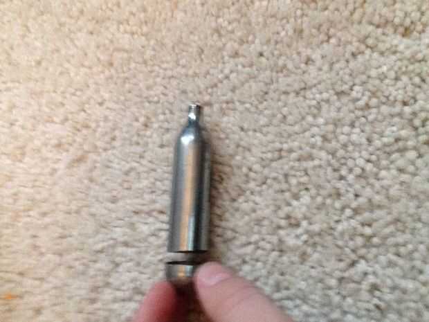 Hacer un agujero en la parte inferior derecha esquina de la lata altoids con su cuchillo tenga cuidado (el cuchillo en la foto de perfil perforado mi piel muchas veces y ganado muchos scoldings y charlas de mis padres) este agujero espanta ser lo suficientemente grande como para poner la boquilla de la lata de co2 en. Pegamento caliente entonces sólo tienes que seguir las fotos. P.s. Jabón funciona como una lavadora con agua caliente. Esto no es realmente una lavadora de filtro sólo de hecho a.. Después de usar con pellets no uso plomo alimentos nunca sale.
