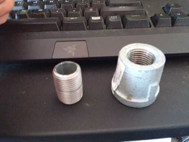 1 de la longitud x de tubería metálica de 3/4 de pulgada. La mía es de aproximadamente 18 pulgadas de largo.