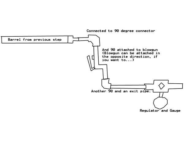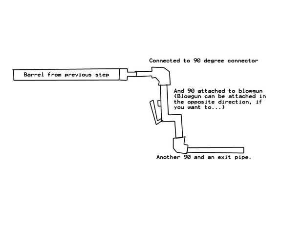 En tercer lugar, tomar el cañón adaptado y adjúntelo a su cerbatana. Si desea una sensación más como de gatillo, añadir un codo de 90 grados y un niple roscado a la cerbatana primero.