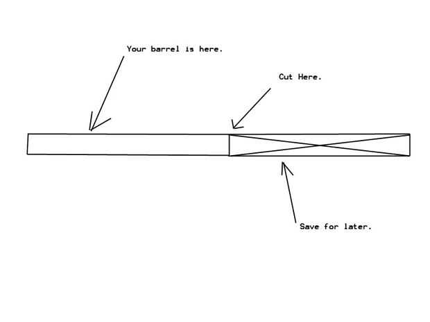 Primero: Ubicar el barril y cortar a la longitud correcta. ¿Qué hacer para obtener dicha longitud? Sólo básicamente ojo-bola de la tubería y elegir cuánto quieres el barril que. Si usted quiere un barril más corto de la longitud, luego realizar uno. Si eres un francotirador y quiere un barril largo, entonces hacerlo, demasiado.