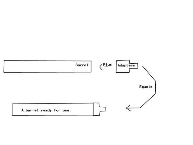 En segundo lugar, tomar el barril recién cortada, encontrar los adaptadores (recuerda que te dije acerca de los...) y en la parte posterior del cañón.