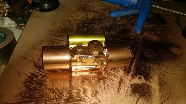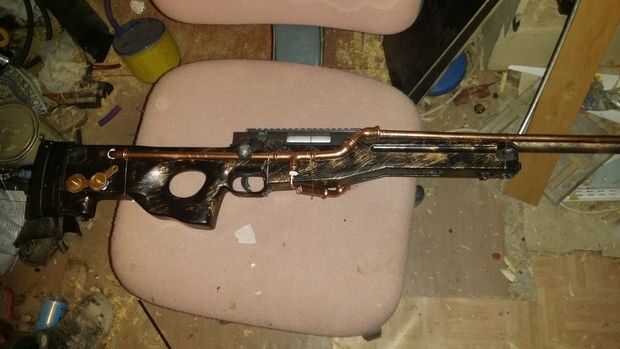 Entonces tomé todos los tubos pintados y utiliza pegamento y algún alambre de hierro para sujetar a los lados de la pistola. También pegué algunos piñones para la culata de la pistola para algunos steampunk más miradas. (Ilustración2)