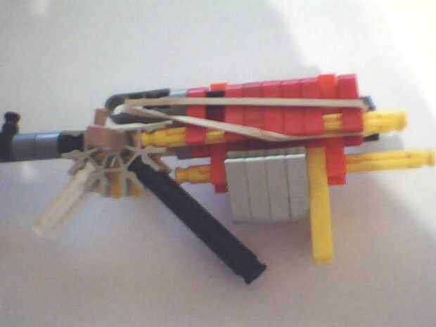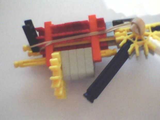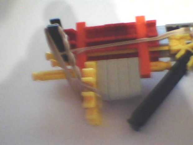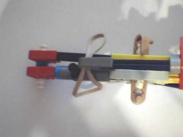 2. tomar los extremos de la banda y ponerlos cada uno en las barras amarillas en el extremo de la pistola.