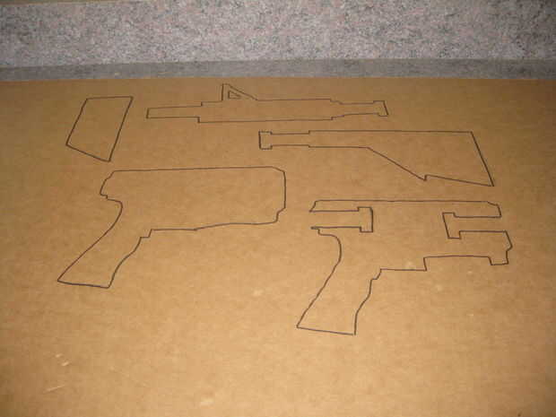 Traza o dibuja un esbozo de lo que lo que las diferentes partes de su arma para ver como. Usted tendrá que dibujar; un cañón, una acción, un clip y la sección principal. En la sección principal, tendrá que remontar dos que son los mismos. Esto puede tomar algún tiempo, pero vale. En una de las secciones principales, tendrá que remontar en cerca de 2 1/2 pulgadas y cerca de 2 pulgadas en rastro fuera en 1/4.