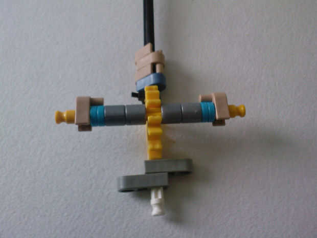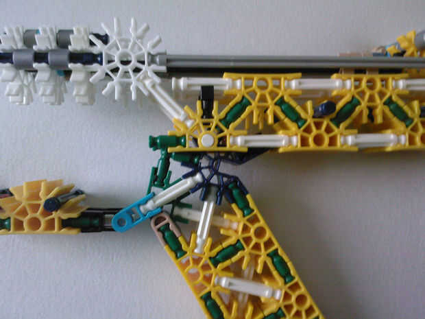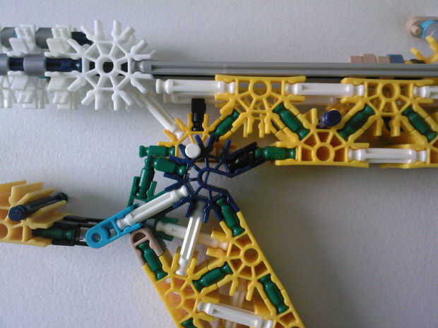 16. la parte posterior de la manija se fija como esta. Las barras verdes en el cuerpo de van en los conectores Y. No tienen que hacer clic en firmemente.
