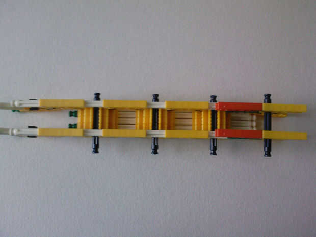 12. Añadir barras de azul y luego añadir conectores amarillos y barras blancas en ellas.