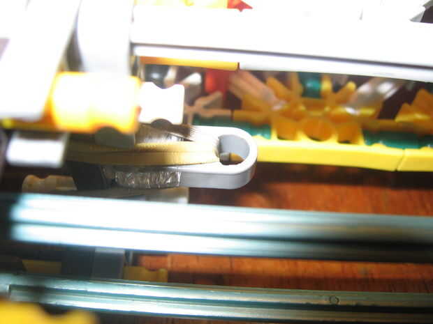 6. poner empujador en revista cercana y poner la banda de caucho alrededor empujador.