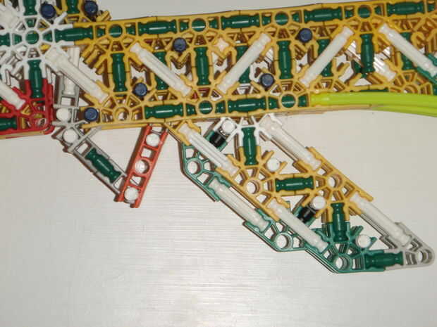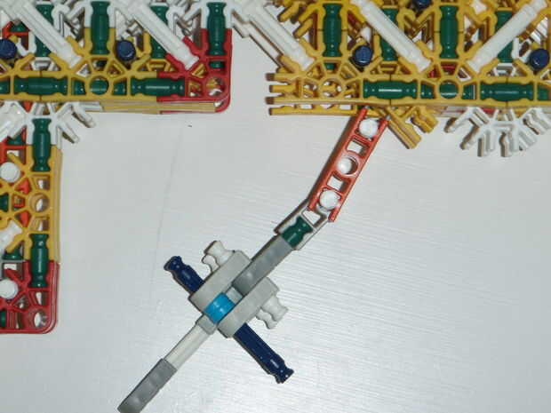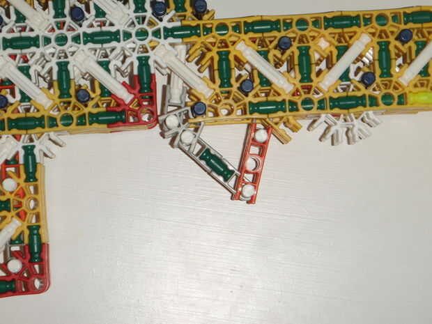 8-ponga la varilla azul por el mech de gatillo y fíjelo a los conectores amarillo