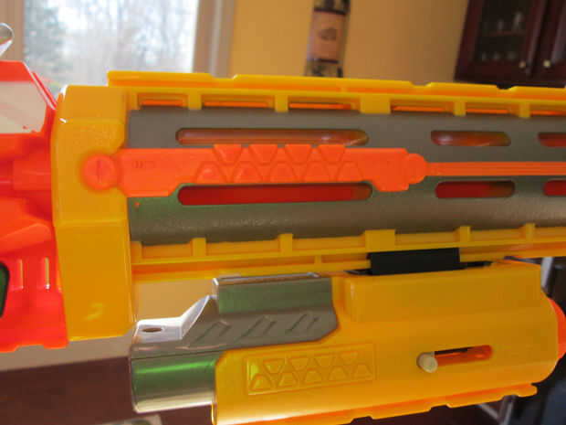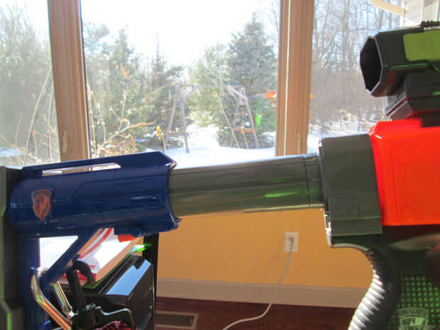 Estoy usando el stock de raider y el barril recon. Esto se vería mejor con un barril azul stryfe y retaliator, pero no los tienen.