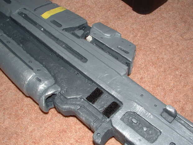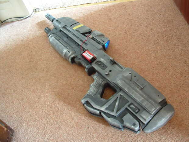 Tuvo varios intentos de conseguir el epóxico para adherir completamente en el soporte de la batería y también directamente a la espuma pintada (demasiado perezoso para raspar la pintura primero lejos!). El producto final es bastante limpio y aunque parece menos AR real (a menos que es separado), se da más la apariencia esquelética que fue diseñado para y también tiene un ligero parecido con el cableado del lado de módulo del laser de la ODST SMG. Aquí fue el resultado: