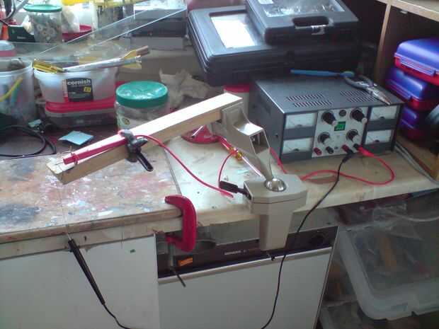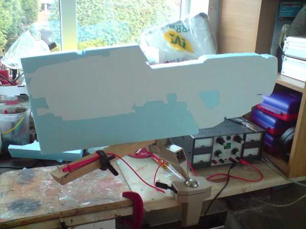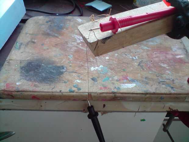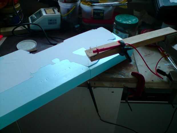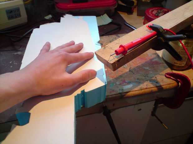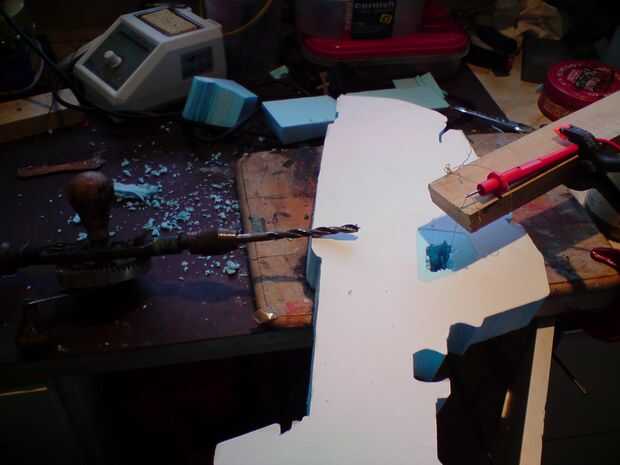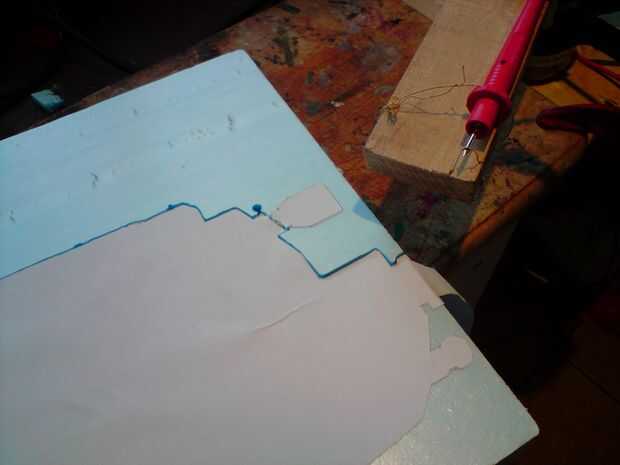 Después de trazar fuera de la plantilla, perforar un gran agujero en el mango hueco, el hilo a través del hilo de rosca y corte demasiado. Una vez que el alambre se retira otra vez, sacar la plantilla de papel (no tirarla aunque!), y usted tendrá algo áspero en forma de pistola.
