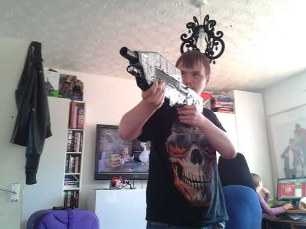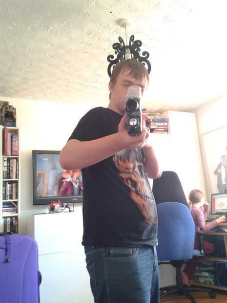 ser celosa. Una réplica basada en el HALO MA5B con sonidos y luces de trabajo.Otro proyecto que va a mi sobrino de 10 año de edad, mismo cabrito con la TARDIS y por supuesto unos tragos de Caitlin haciendo lo de Patty Hearst probándolo. Es una selva