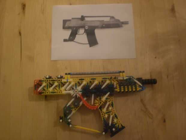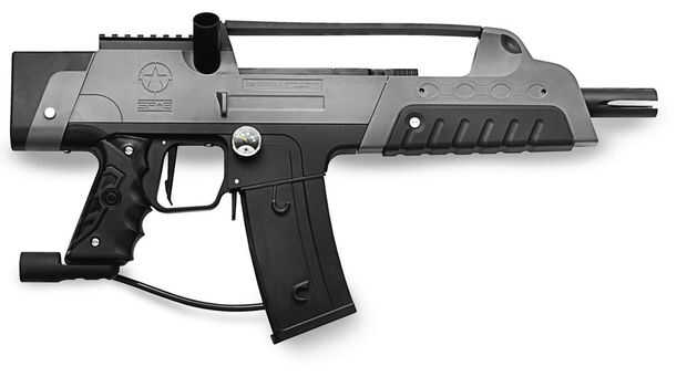 La primera foto es del arma sí mismo, y la segunda foto es la real uno (sí, es un arma de paintball)