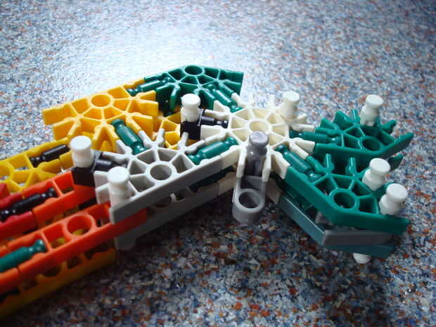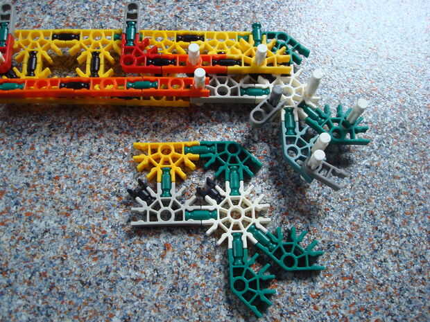 una versión de KVG de un rifle de plasma de Halo.Paso 1: piezasLista de piezas:Barras deVerde - 22Blanco - 10Azul - 12Amarillo - 13Rojo - 13Gris/negro - 12ConectoresGris - 8Gris claro - 38Naranja - 14Rojo - 4Verde - 8Amarillo - 38Blancos copos de nie