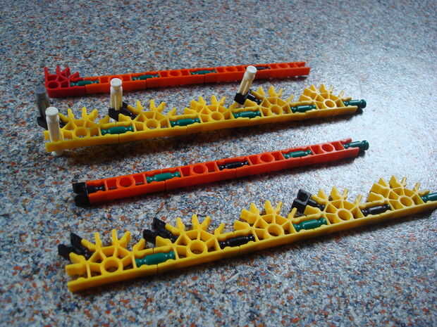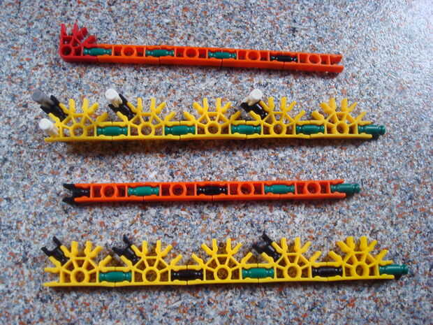 una versión de KVG de un rifle de plasma de Halo.Paso 1: piezasLista de piezas:Barras deVerde - 22Blanco - 10Azul - 12Amarillo - 13Rojo - 13Gris/negro - 12ConectoresGris - 8Gris claro - 38Naranja - 14Rojo - 4Verde - 8Amarillo - 38Blancos copos de nie