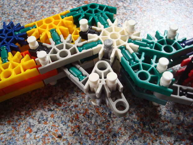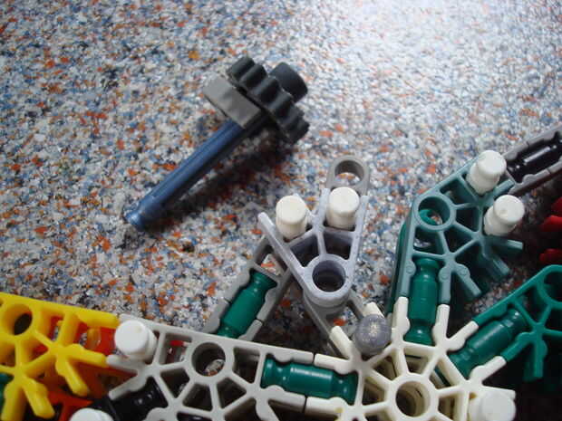 una versión de KVG de un rifle de plasma de Halo.Paso 1: piezasLista de piezas:Barras deVerde - 22Blanco - 10Azul - 12Amarillo - 13Rojo - 13Gris/negro - 12ConectoresGris - 8Gris claro - 38Naranja - 14Rojo - 4Verde - 8Amarillo - 38Blancos copos de nie
