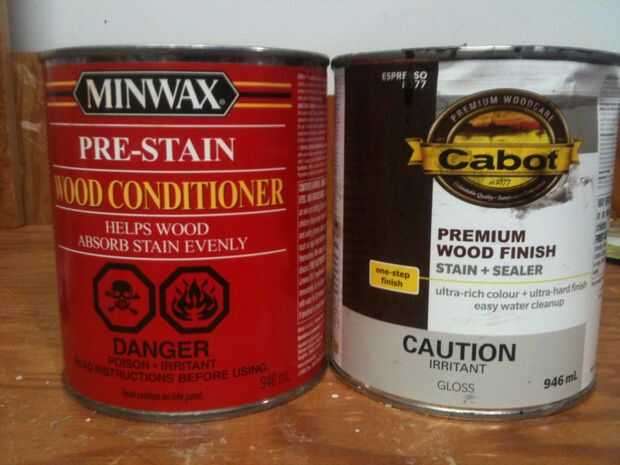 ~ 1xStain y acondicionador - http://www.homedepot.ca/product/wood-conditioner/9... (No estoy seguro donde la mancha de vino de)