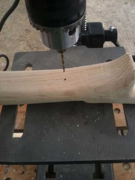 Reprimieron el cañón en su lugar y usa el taladro para perforar un pequeño orificio en la madera y el metal. Luego poner un tornillo y afianzado con abrazadera para el segundo agujero. Luego le puse el tornillo. Luego, hice el agujero del contador pero podría fácilmente haber hecho durante la perforación, sólo significaría que habría sido cambiar la broca cada vez.