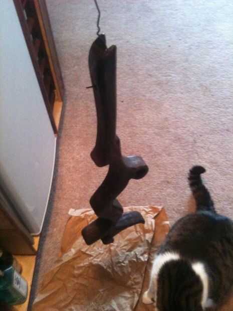 El detonante fue algo que dejé para decidir finalmente. Terminé usando unos ganchos para poner juntos. Esto funcionaba mejor entonces yo esperaba, porque resultó que lo había en la foto lo. Era bastante simple, tomé un gancho grande y golpeado y doblado a como cerrar un formulario que podría conseguir. Luego perforados y había unido con unos tornillos pequeños 3/4". El real fue sólo un gancho pequeño con gancho sujeta al mayor con los taladros estándar y tornillos. El gatillo está ligeramente descentrado, pero usted puede apenas decir.