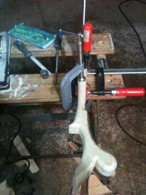 Realmente el otro problema que tuve fue averiguar cómo sujetar la culata ya que es tan delgada y con curvas. En la última foto aquí realmente estoy usando tres abrazaderas para sujetar firmemente a la mesa. Tenía que ser carfule hacerlo como la madera es suave y propenso al fracaso.