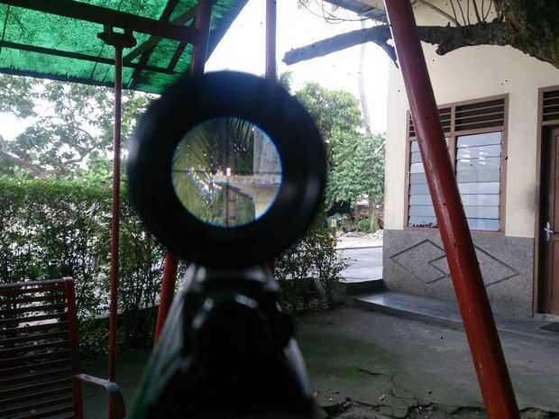 Cansado de estar en la oficina de laboratorio, se trasladó al aire libre. Sí, ejercida con mi rifle, pero luego encontró mi mano izquierda (con la culata delantera) estaba temblando. No tanto, pero me hizo perder mi objetivo. Entonces miré a mi alrededor buscando algo que podría reemplazar a mi mano izquierda. Ver dos pedazos de madera-palillo de paleta me recordaron sobre trípode, que era una vez quería comprar un trípode de cámara réflex digital para mi rifle.