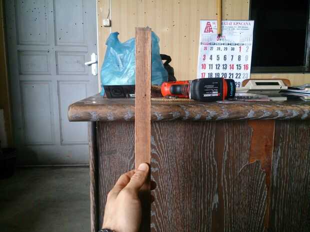 Medir la altura de los hombros para determinar los palillos de madera punto de paso. Usted puede hacer mayor o menor según su comodidad disparo. Perforar dos palos en ese momento, luego poner el tornillo en. No ajuste la tuerca demasiado en el palo ya es nuestro movimiento pivote. Es por eso que necesitamos dos tuercas. Sujete la segunda tuerca a la primera tuerca, esta vez que sea apretado.