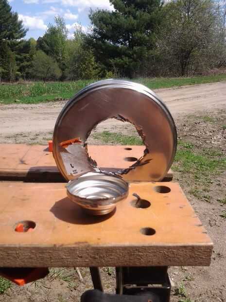 Refiriéndose a las imágenes, puede ver la parte que fue cortado con una amoladora y que yo posteriormente lijar con distintos granos para quitar el filo.
