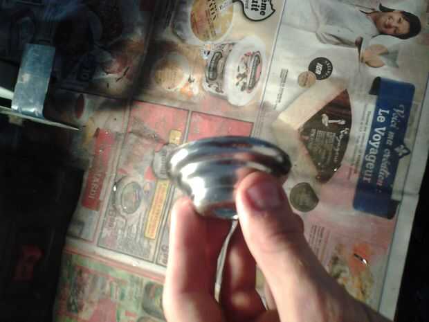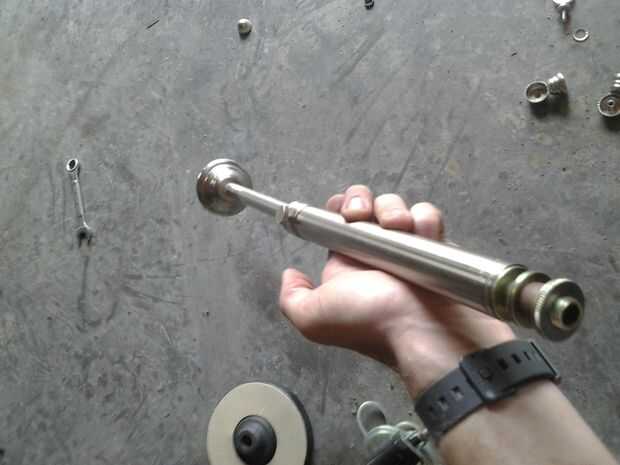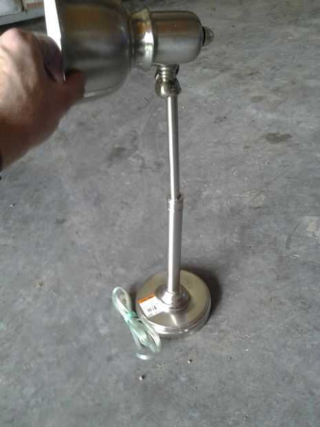 Los componentes de la lámpara tenían que ser tomado aparte y la base fue molida hacia fuera para luego ser colocada en la final del poste de la lámpara.