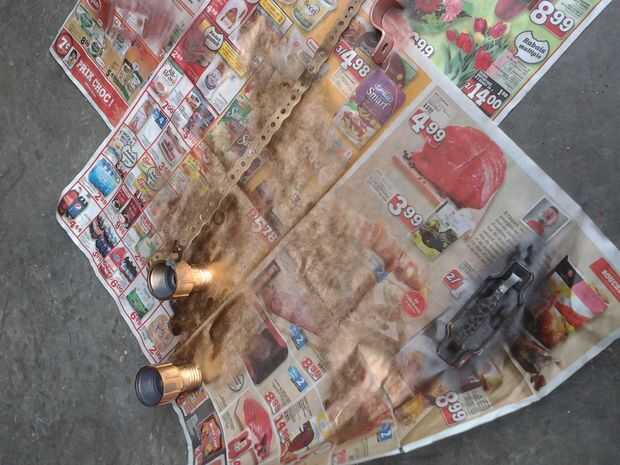 Para pintar las bandas metal utilicé una no corrosiva, pintura en aerosol color latón.
