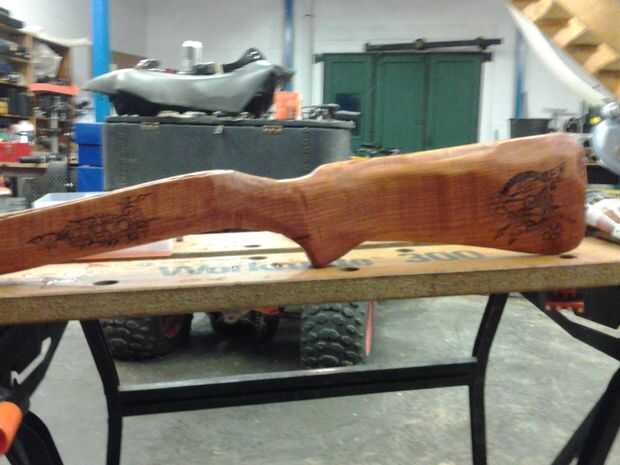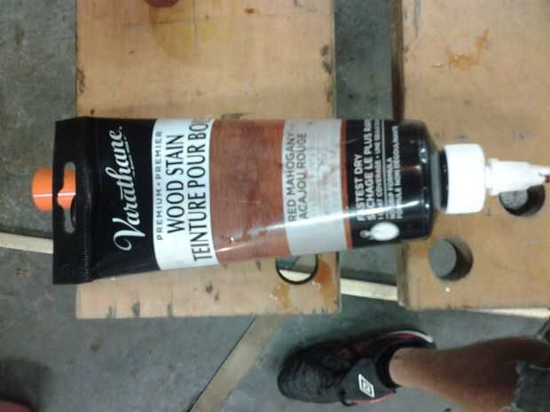 Esencialmente: encontrar los diseños te gusta, quema a la madera, teñir la madera y luego barnizar con poliuretano.