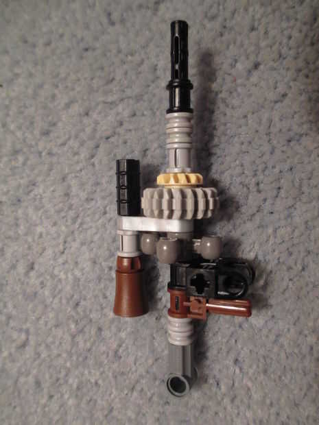 esto es, de lejos mi mejor arma diseñado que he hecho. es muy precisa y con una buena banda de goma tiene un buen rango (40-50 pies). la acción es duradera y el mango diseñado para parecerse a los springfields. está cargada y dispara barras blancas.