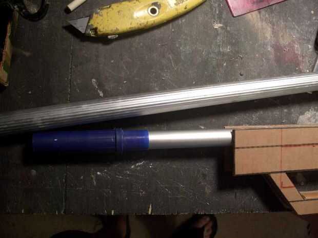 El mango telescópico tenía tres secciones. El interior fue utilizado para el cañón inferior. La sección interior se extiende a ser 'apropiada' de la longitud y la longitud restante simplemente añade soporte para la pistola dentro de la cartulina.