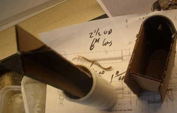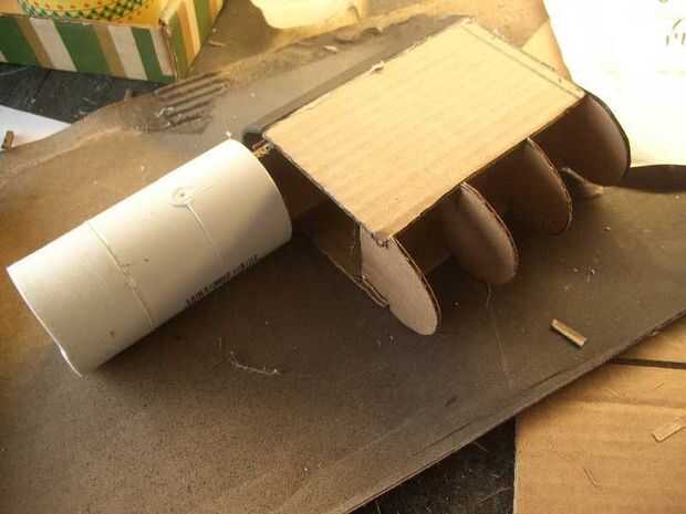 Para sostener el tubo alcance al cuerpo he creado lo que parece un signo sacado. Esto fue hecha de tres trozos de cartón y recorre toda la longitud de los acopladores del PVC y el cuerpo del alcance. Le dio mucho apoyo.