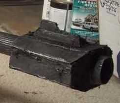 El cuerpo fue hecho de cardbard y de la misma manera haces las alas de avión modelo. Cortar algunas costillas y luego simplemente acumulado cartón laminado alrededor de él. También encontré un trozo de plástico de una silla de oficina que me dio de los lados redondeados.