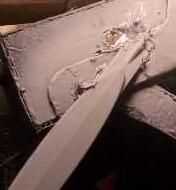 Detalle de cartón extra fue agregado al alcance y fue unido a la parte superior de la pistola sobre una base de cartón.