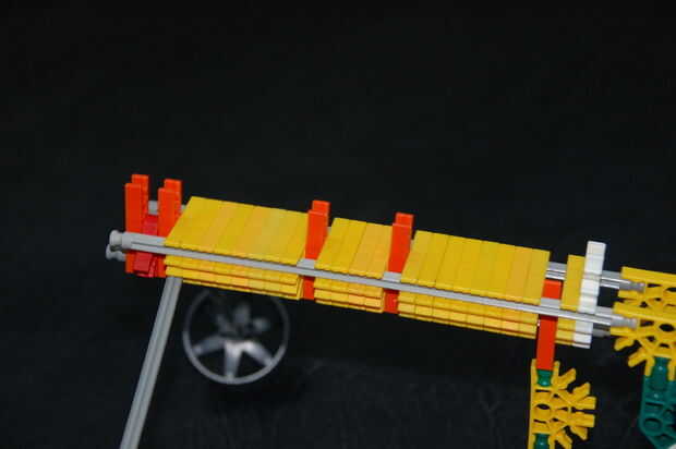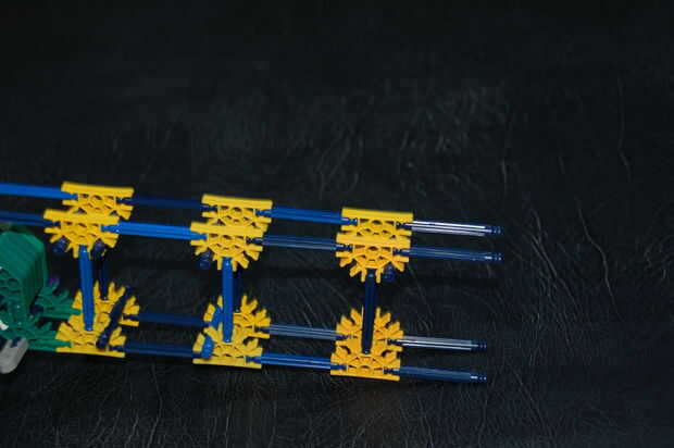 esta es el arma más poderosa de K'NEX creo que porque puede perforar 2 cerveza o COLA puede y destruir disco compacto fácilmente debido a la muy fuerte 4 gomas (yo uso 2 ligas diferentes) también incluye una gran revista para 5 K'NEX largo gris afila