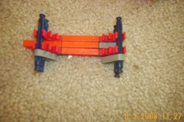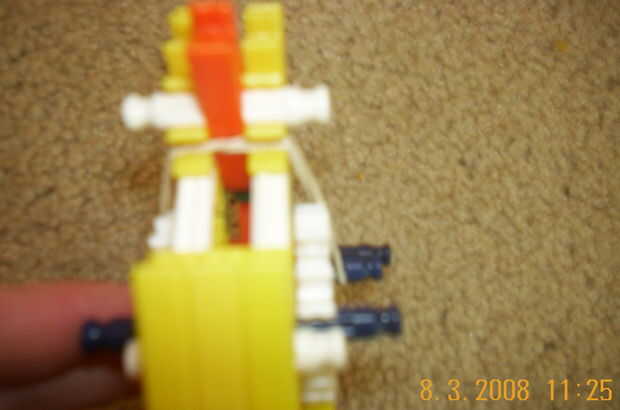 esto es, de lejos mi mejor arma diseñado que he hecho. es muy precisa y con una buena banda de goma tiene un buen rango (40-50 pies). la acción es duradera y el mango diseñado para parecerse a los springfields. está cargada y dispara barras blancas.