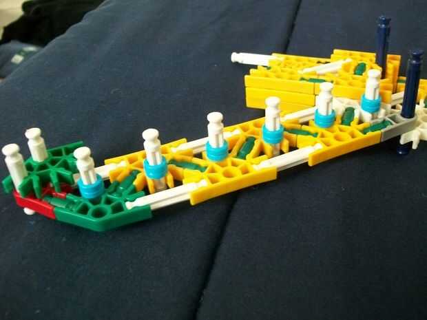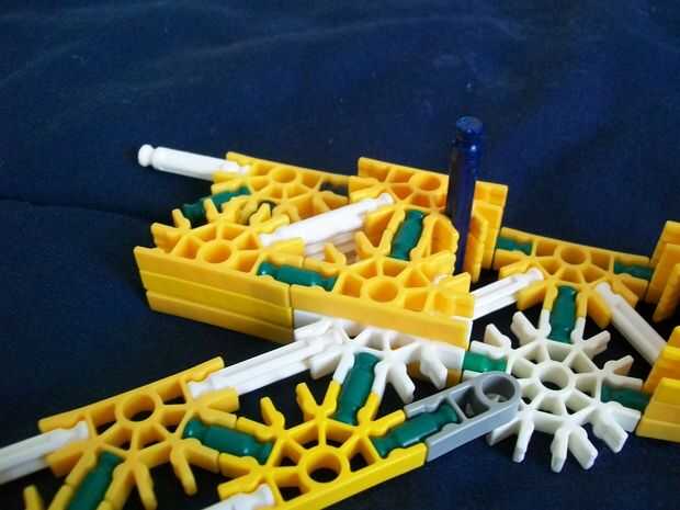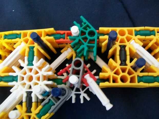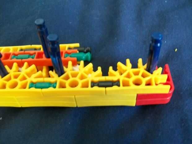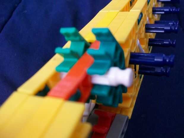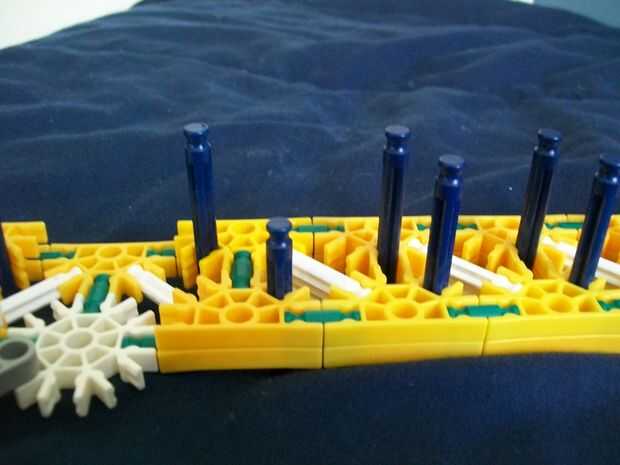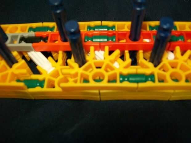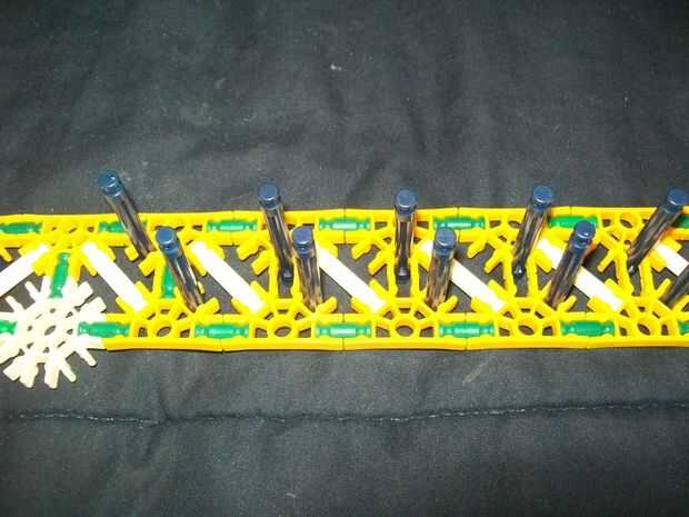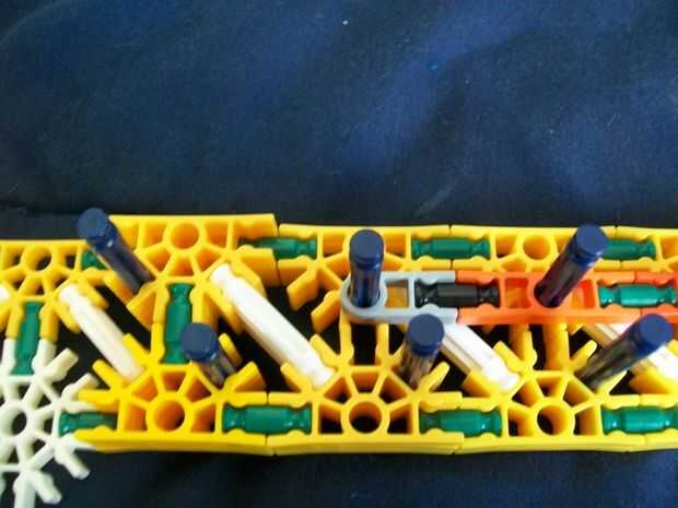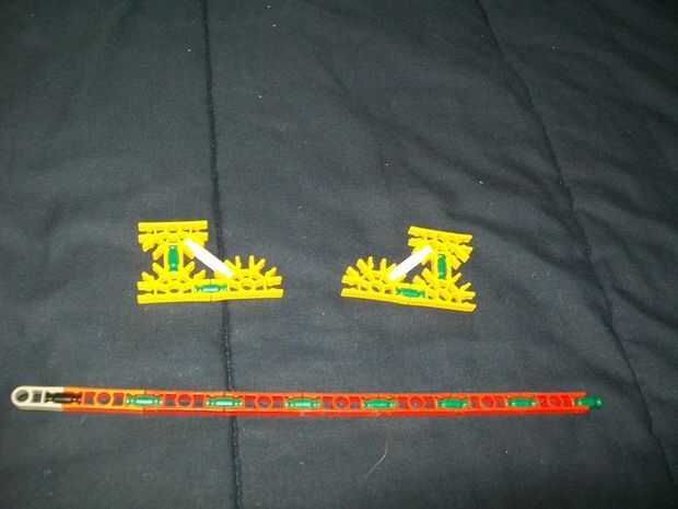 26 (añadir estas barras de blanco y la barra sola, azul [p.s. hay sólo dos distanciadores azul en las varillas blanco [p.p.s. allí es también un conector verde en el extremo de la manija,]])