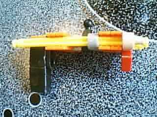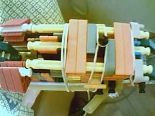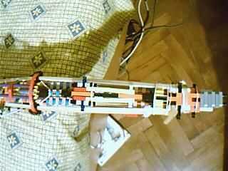 esto es, de lejos mi mejor arma diseñado que he hecho. es muy precisa y con una buena banda de goma tiene un buen rango (40-50 pies). la acción es duradera y el mango diseñado para parecerse a los springfields. está cargada y dispara barras blancas.