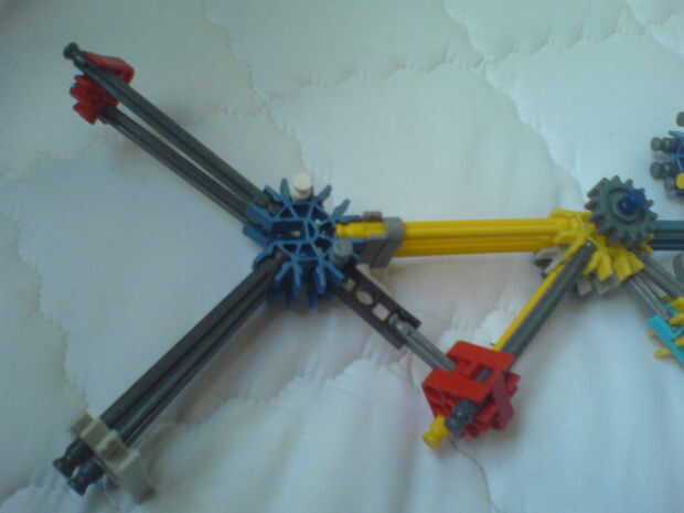 esta es el arma más poderosa de K'NEX creo que porque puede perforar 2 cerveza o COLA puede y destruir disco compacto fácilmente debido a la muy fuerte 4 gomas (yo uso 2 ligas diferentes) también incluye una gran revista para 5 K'NEX largo gris afila