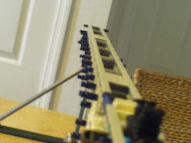 esto es, de lejos mi mejor arma diseñado que he hecho. es muy precisa y con una buena banda de goma tiene un buen rango (40-50 pies). la acción es duradera y el mango diseñado para parecerse a los springfields. está cargada y dispara barras blancas.