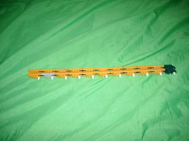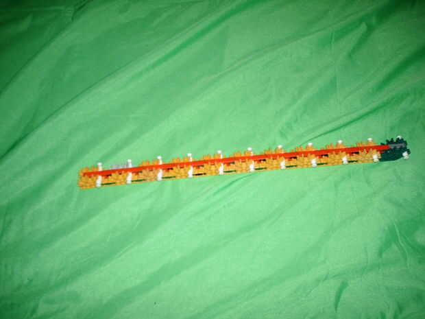 esto es, de lejos mi mejor arma diseñado que he hecho. es muy precisa y con una buena banda de goma tiene un buen rango (40-50 pies). la acción es duradera y el mango diseñado para parecerse a los springfields. está cargada y dispara barras blancas.